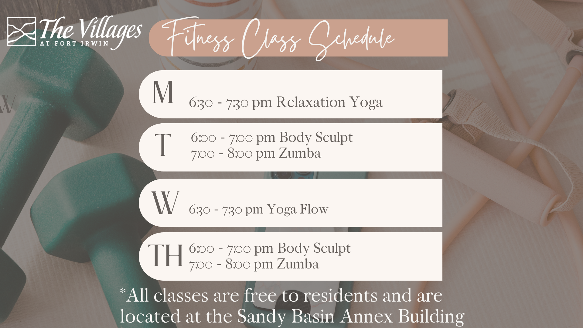 Check the December Events Calendar for the full class schedule/instructors’ availability.
